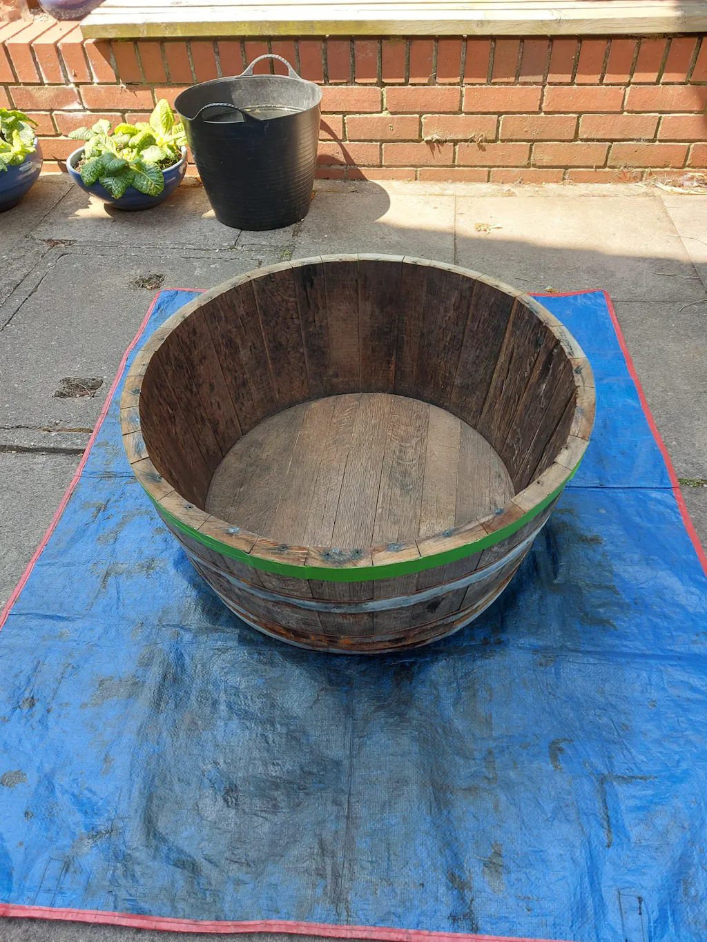 I made sure the whisky barrel was dry and dust free then started applying thin coats as directed by customer services. It does stay slightly soft but they said this was a characteristic of the product. Six coats later and its better than it ever was. No leaks and much better on the eye.