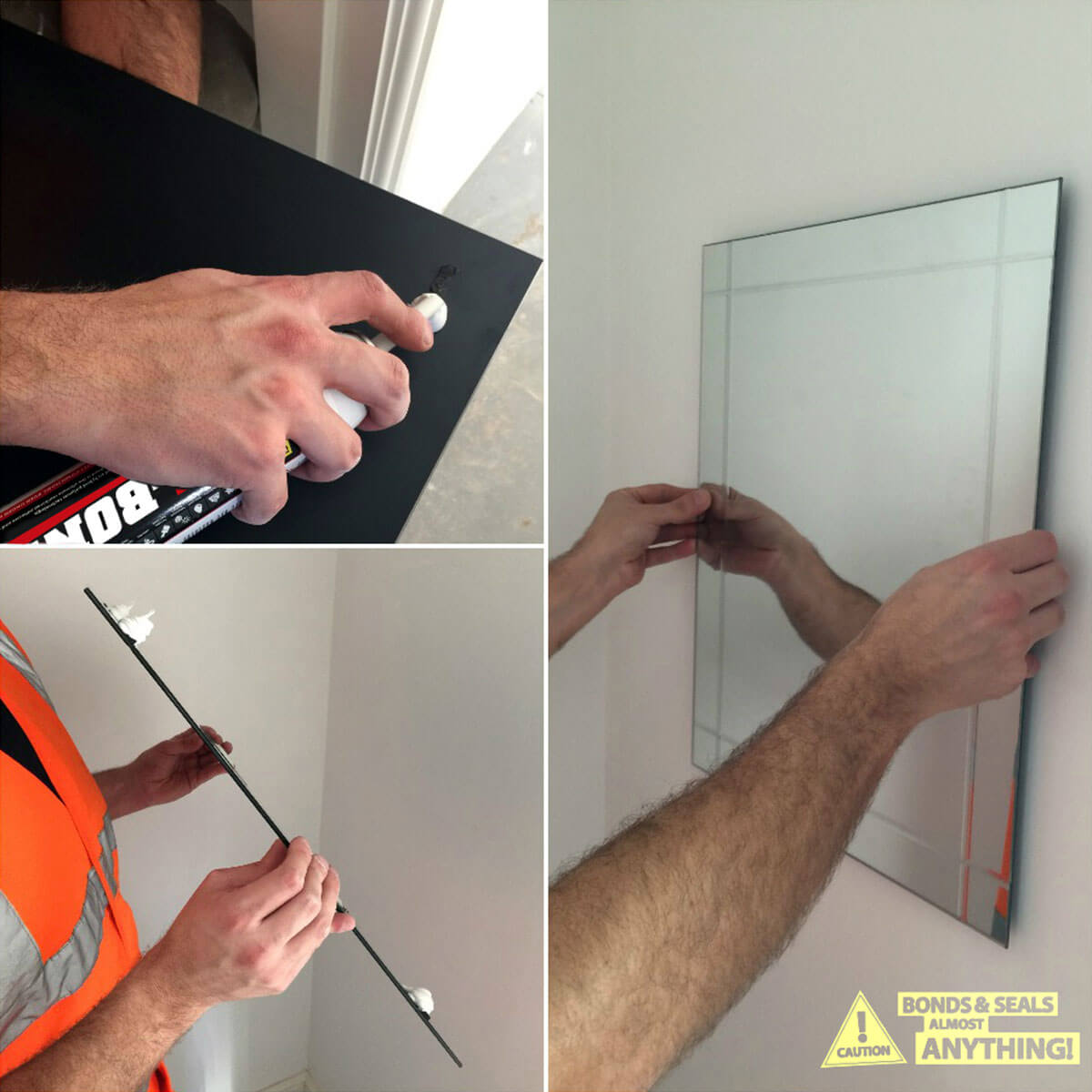 Yes, S-Bond can be used for this application, however, if the item you wish to affix is heavy and has a poor contact surface area it is advised that either a mechanic fixing or heavy-duty tape is used to hold the item in place whilst curing takes effect.