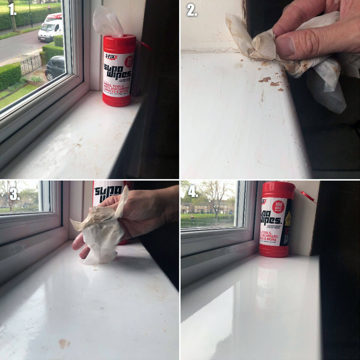 Supa-Wipes can remove Grease, Oil, Tar, Paints, Expanding Foam, Silicones, S-Bond, Polyurethanes, Glue, Marker Pen and much more.